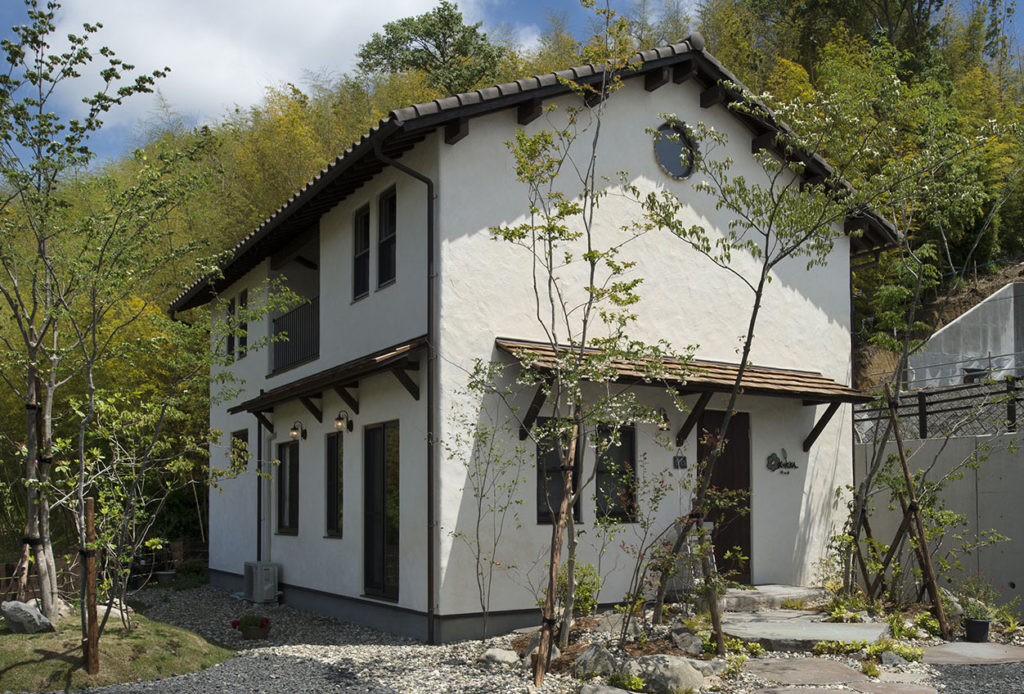 ラフェルムならではの漆喰の白を基調とした外観は、素朴ながらも可愛らしい仕上がり。さりげない丸窓も印象的です。