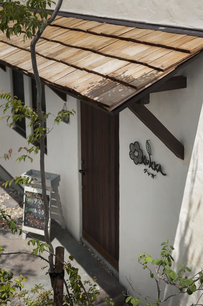 カフェの名前は「kukka(クッカ)」。可愛らしいお店のオリジナルロゴ看板は職人の手作りで、入口に華を添えています。ウェルカムボードも味わいある木製で、建物に合わせた白の塗料で仕上げてました。余計なものがないスッキリとした面構えで、優しくお客様を迎え入れてくれます。
