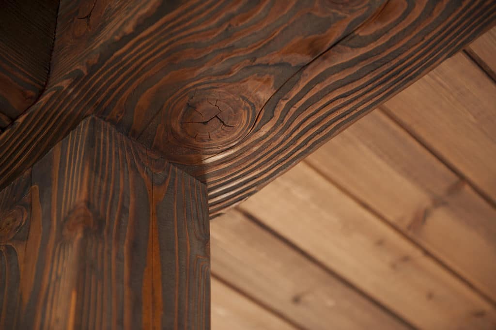 店内の柱や梁には、職人が1本1本エイジング加工をした木材を使っています。時を経たような木の深みある美しさが、カフェ全体に「古美た」印象を添えてくれます。